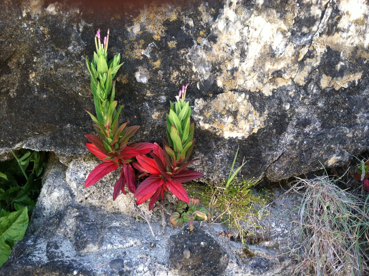 Purple-leaved willowherb (Epilobium ciliatum>) growing on rocks just a couple feet above the high tideline
