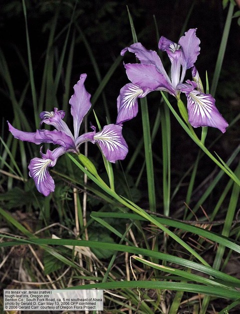 Oregon iris (Iris tenax) grows on coastal prairie at High Meadow
