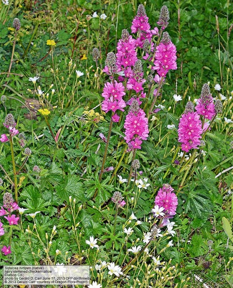 Hairy-stemmed checkermallow (Sidalcea hirtipes) grows on High Meadow